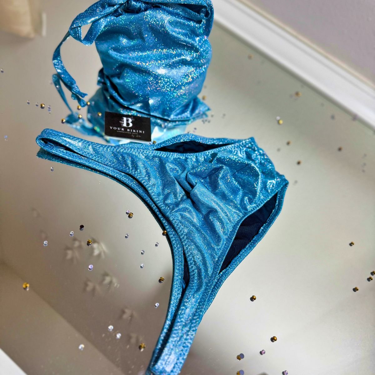 Bold capri blue posing suit with lycra fabric and a comfortable competition fit.
