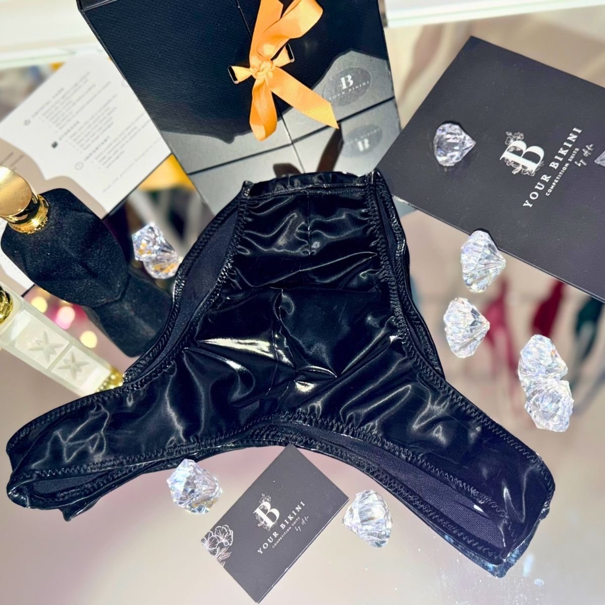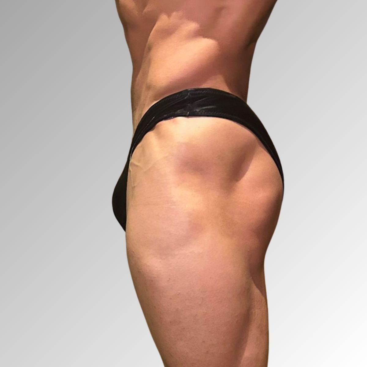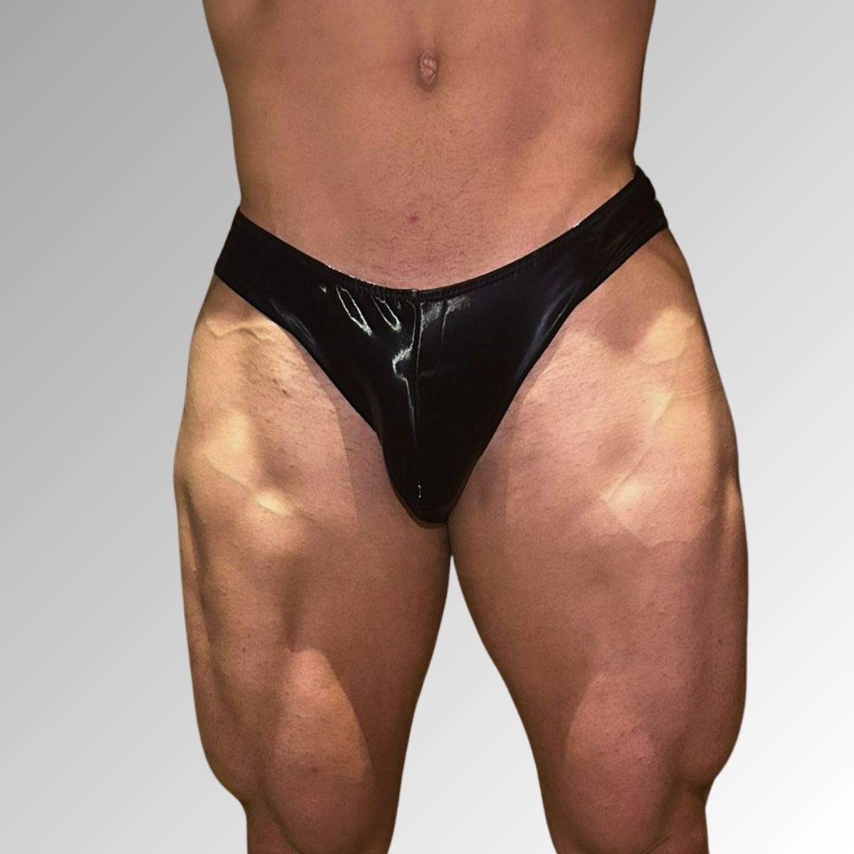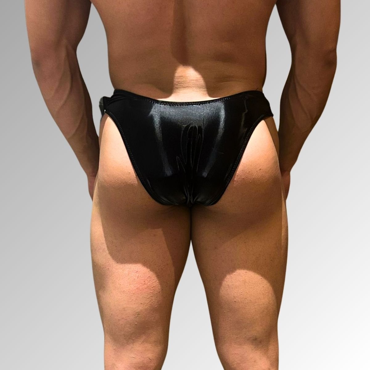 Glossy Black is a ready-to-ship posing suit designed for a sleek, bold, and high-shine stage presence.