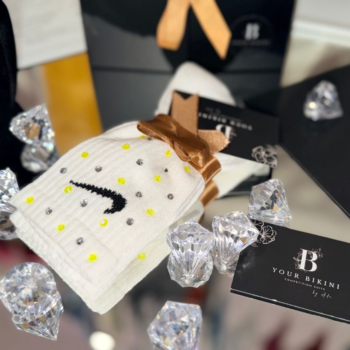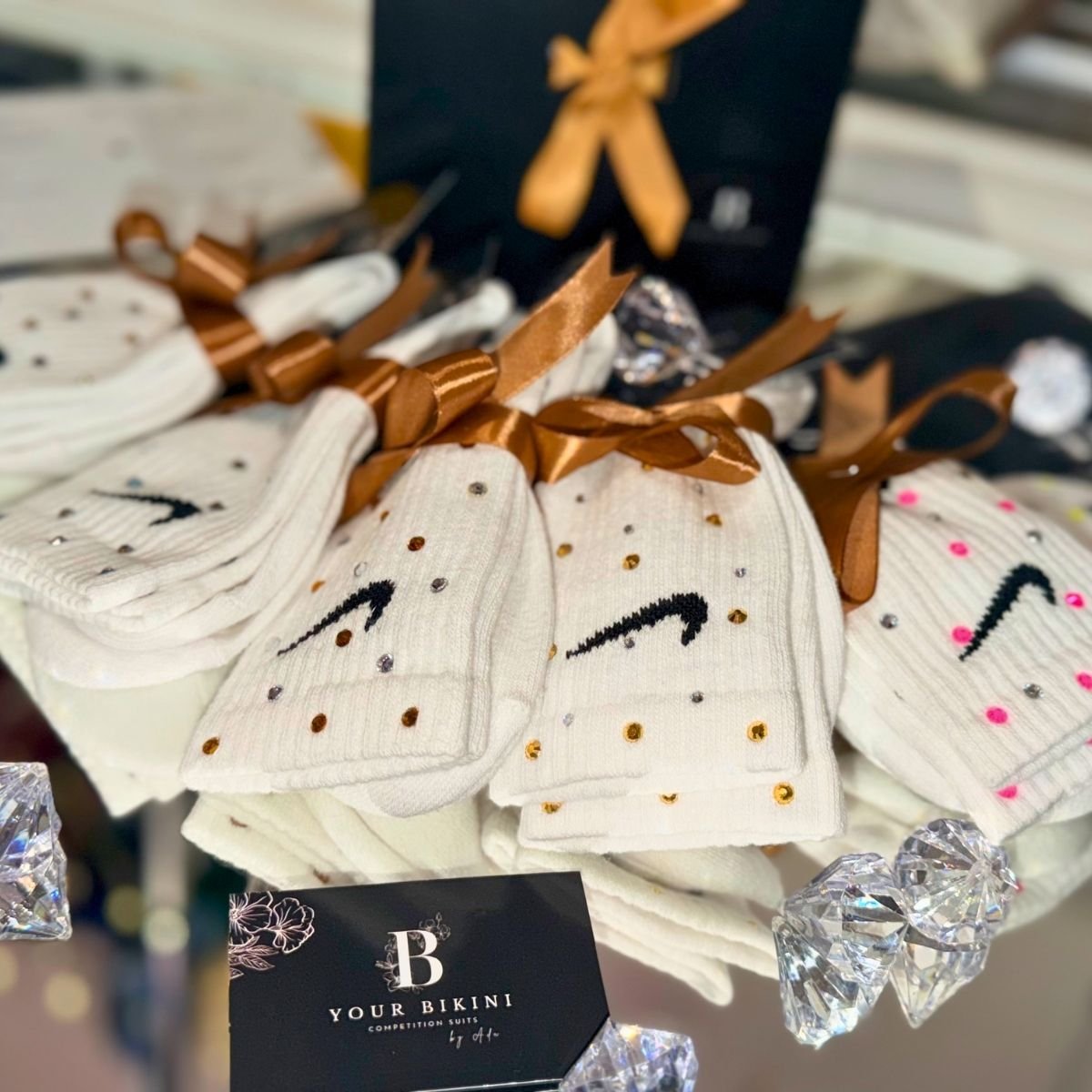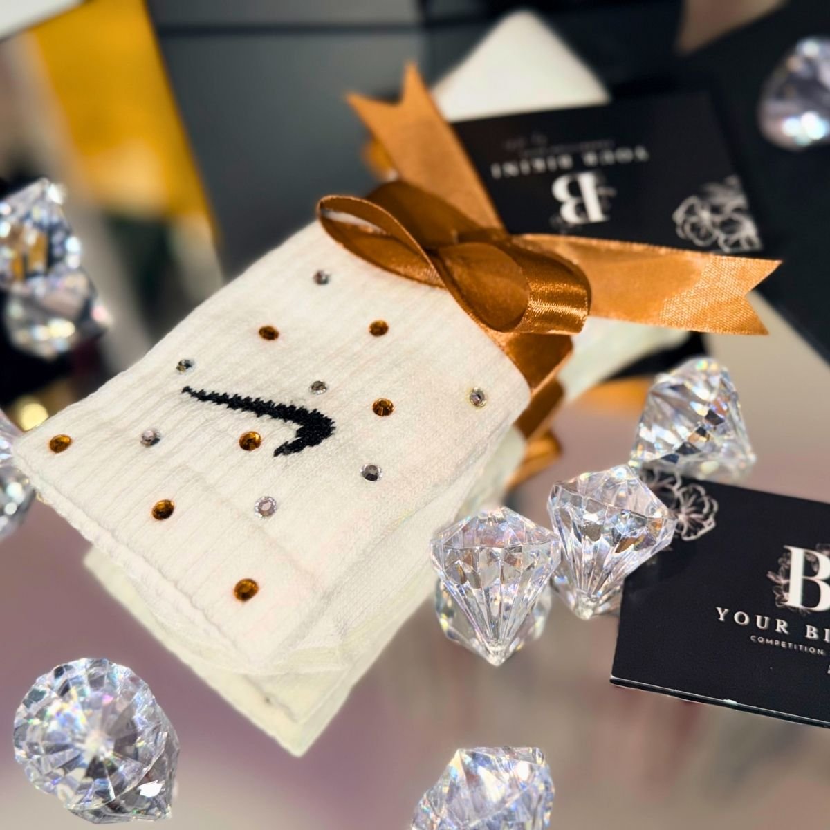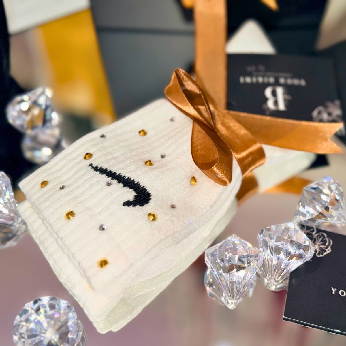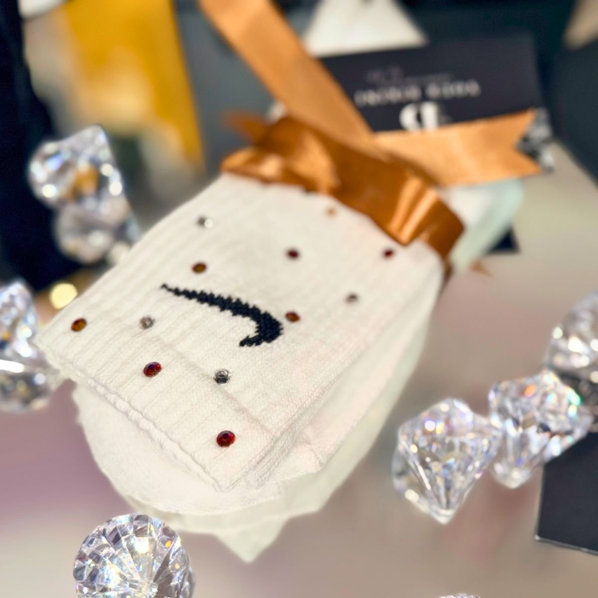 Nike White Socks featuring premium crystal detailing for a stylish sporty look with everyday comfort and standout sparkle.