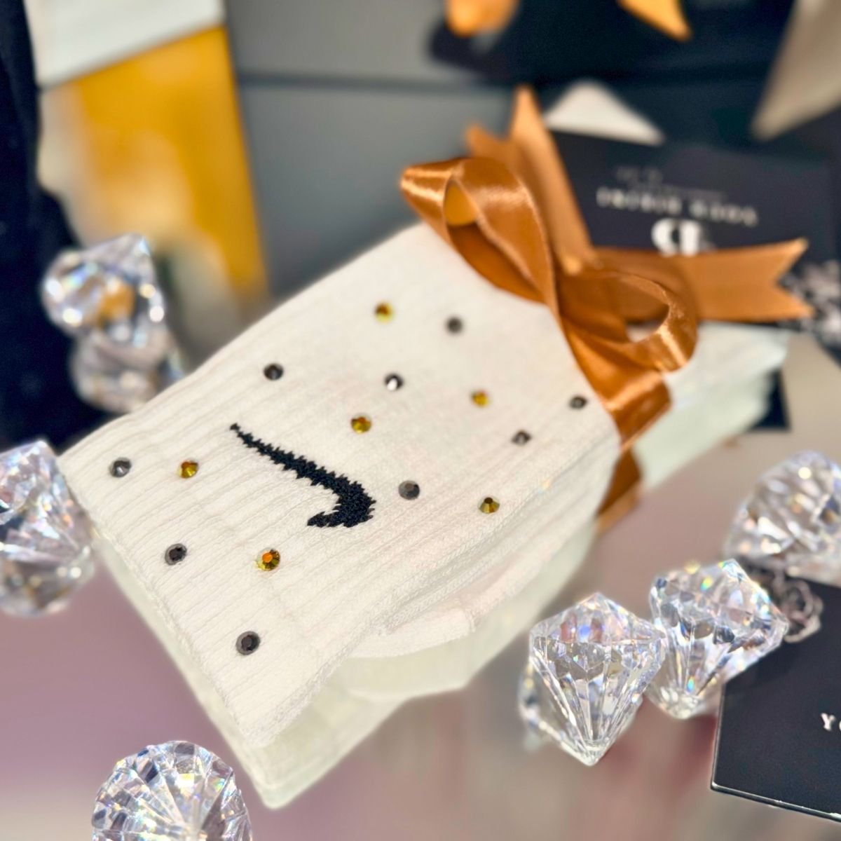 Nike White Socks are designed to combine comfort, style, and eye-catching crystal detail for a premium everyday look.